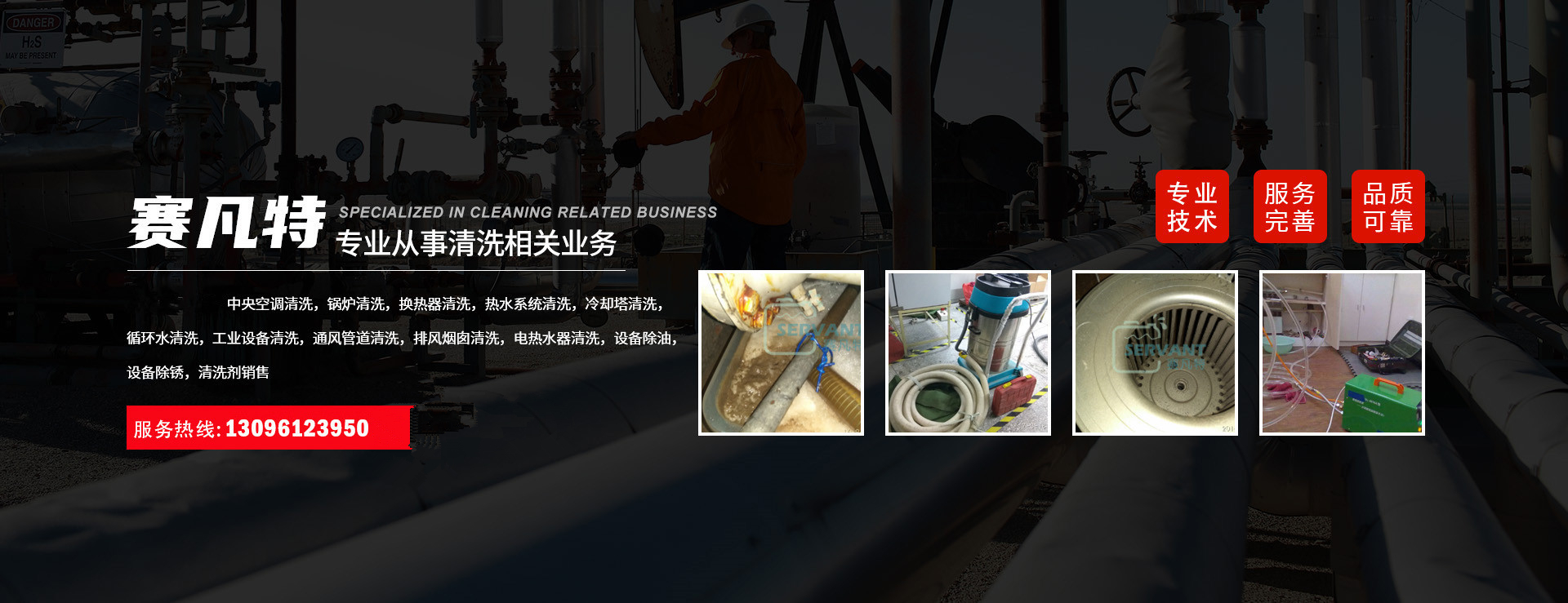 工業清洗工業制冷、供熱設備、各種儲罐、通水設備、鍋爐、循環水水處理與水質管理,冷卻塔、風管、工業排風煙囪清洗消毒,凍庫制冷設備、風